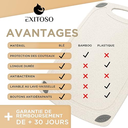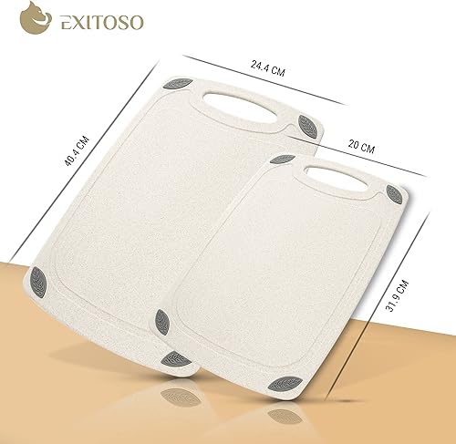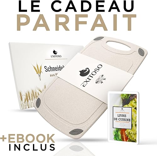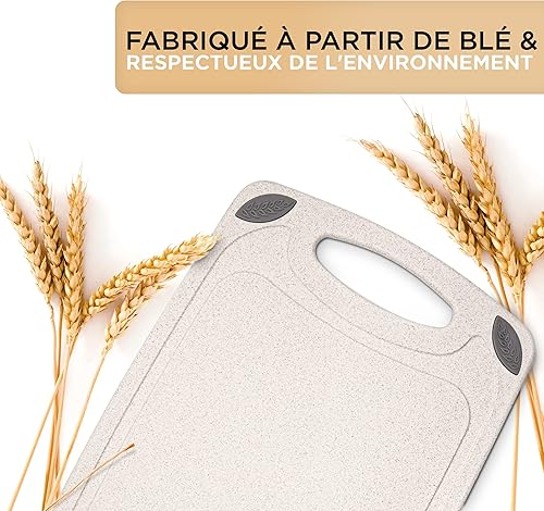 Exitoso Lot de 2 Planches à découper en Paille de Blé Beiges - Planche à decouper Cuisine Légere - Poignée Facile à Saisir & Rainure de Jus - Passe au Lave-vaisselle, Antidérapante et Antibactérienne