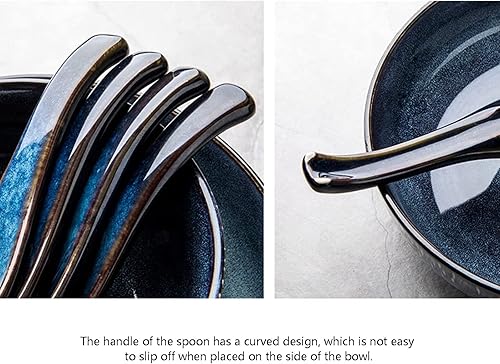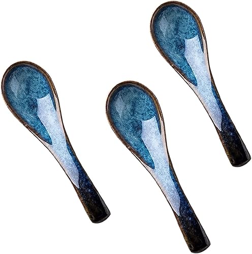 Lot de 3 cuillères chinoises en céramique - Bleu vintage