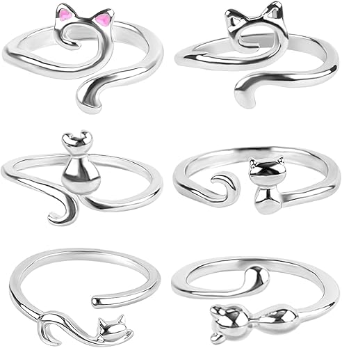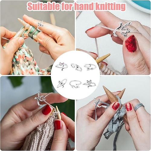 6 Pièces Boucle de Tricot, Réglable Bague de Crochet Chat Anneau de Tension au Crochet Accessoires de Crochet pour un Tricot Plus Rapide Femmes Cadeau Débutant (6 Styles)