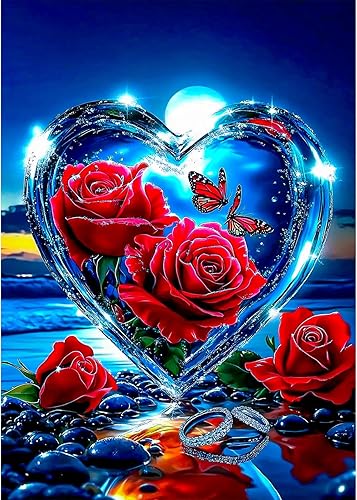 MEIYUDA 5D Diamond Painting Adulte Rose, Diamond-Painting Peinture Diamant Bord de mer, Enfant Strass Point de Croix Cristal Painting pour Murale Décoration 30x40cm
