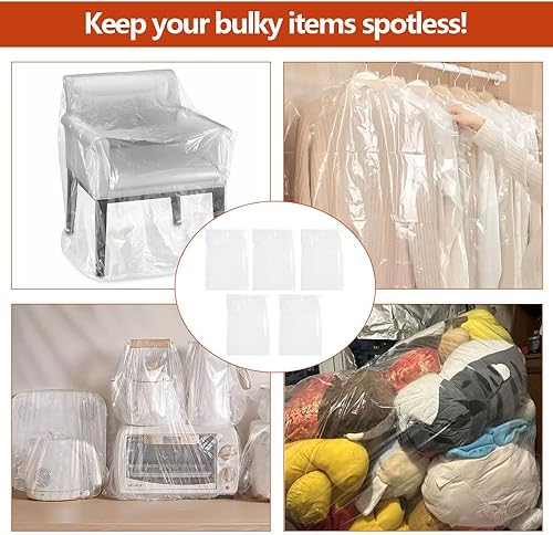 5 Pièces 100 × 150cm Grands Sacs de Rangement Extra Larges, Grand Sac Plastique Transparent Anti-Poussière, Résistants à L'humidité Sacs de Déménagement pour Bagages, Meubles, Consolateurs, Chaise