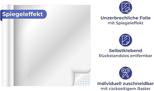 Maximex Feuille Miroir indéchirable avec Effet de réflexion | Collage Facile | Découpe personnalisée | Quadrillage pour précision | 58 x 150 cm
