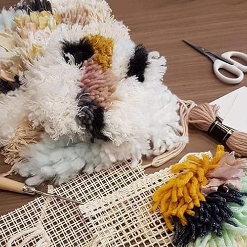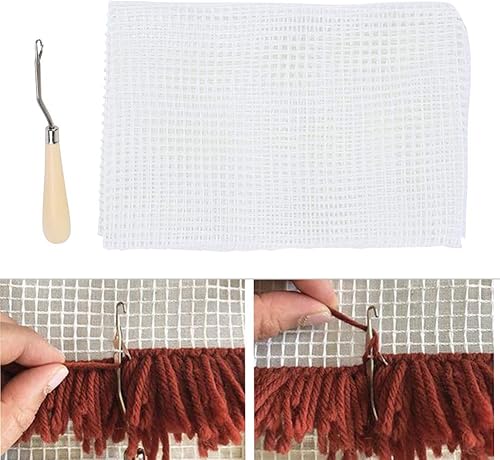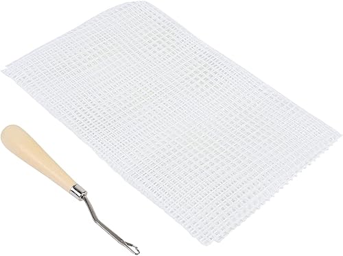Toile de tapis bricolage, tapis vierge crochetant la toile de maille tapis à l'aiguille toile de maille pour crochet de loquet tapis tapisserie toile(Tissu maille 50cm + crochet manche en bois)