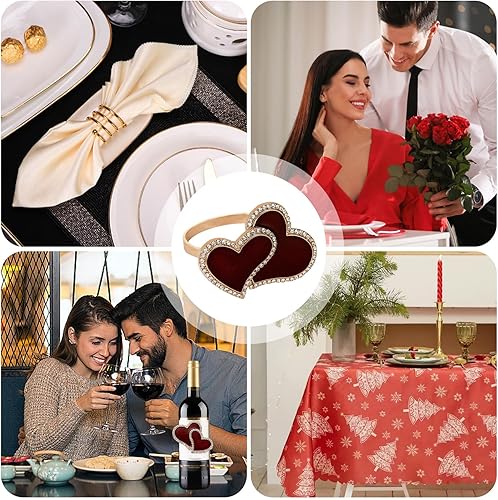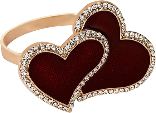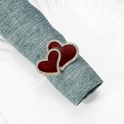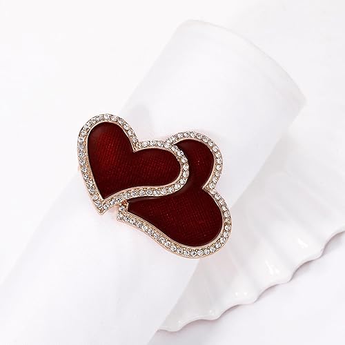 Bexdug Ronds de Serviette en métal, Ronds de Serviette pour la Saint-Valentin,Support métallique Double en Forme de cœur pour mouchoi | Ronds de Serviette de Couleur Or, Ornement pour Les fêtes de