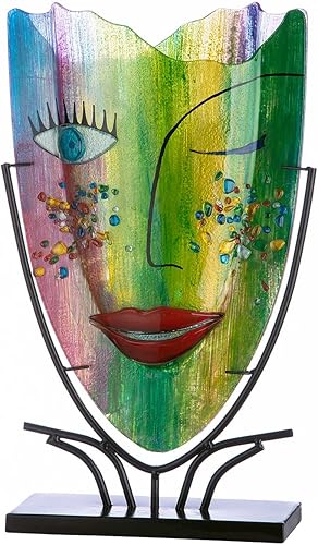 GILDE GLAS art Vase décoratif en Verre avec Base en métal - Décoration pour Salon - Cadeau pour Femme - Peint à la Main - Multicolore - Hauteur : 49 cm