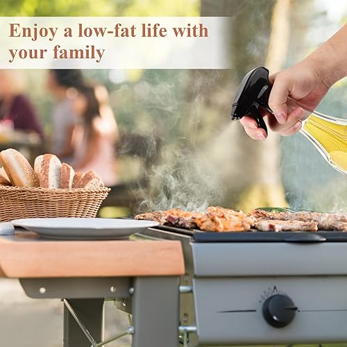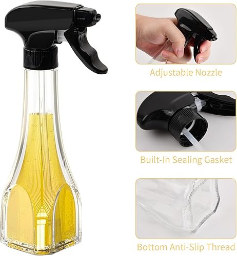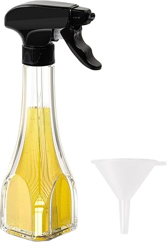 Spray Huile Cuisine en Verre 240ml avec 1 Entonnoir, Vaporisateur D'huile Alimentaire avec Buse Réglable, Pulvérisateur D'huile Transparente pour Friteuse à Air Chaud BBQ Salade Cuisson Rôtissage