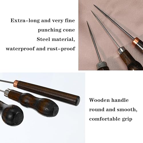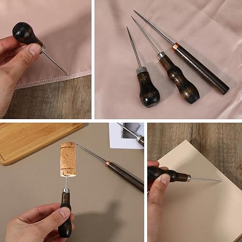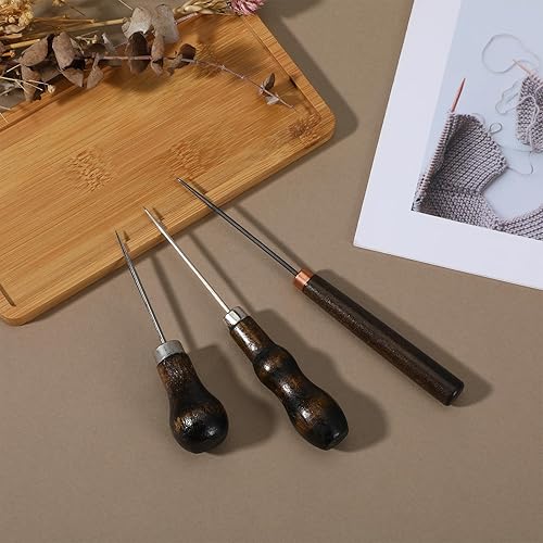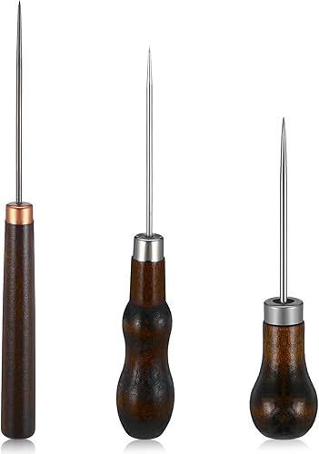 Ptwola Lot de 3 poinçons à gratter avec poignée en forme de gourde - Poinçon en bois - Outil de réparation de chaussures de couture - Fournitures de couture pour les tailleurs, le crochet, le