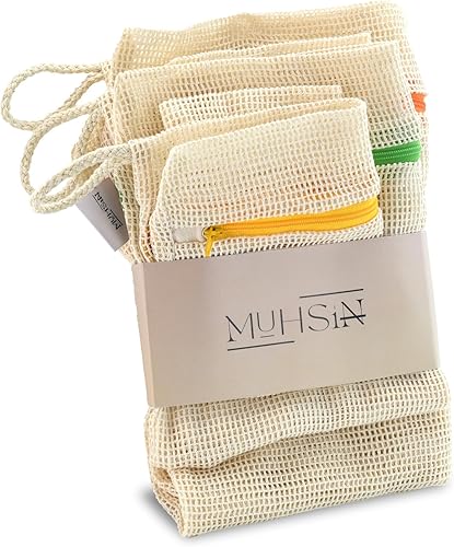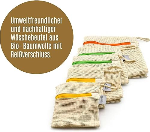 Lot de 5 sacs à linge en coton de qualité supérieure avec fermeture éclair sans micro-plastique, pour machine à laver, organisateur de voyage, pour linge sale