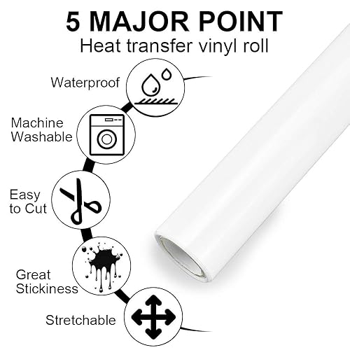 GOLRISEN Transfert Thermique Vinyle Thermocollant PU Vinyle Thermocollant Textile de 30*150cm Transfert de Chaleur à Forte Adhérence Rouleau Vinyle Thermocollant Blanc pour T-Shirts Chapeaux Vêtement