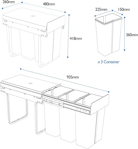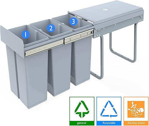 1home Poubelle de recyclage extractible pour placard de cuisine (30 litres)