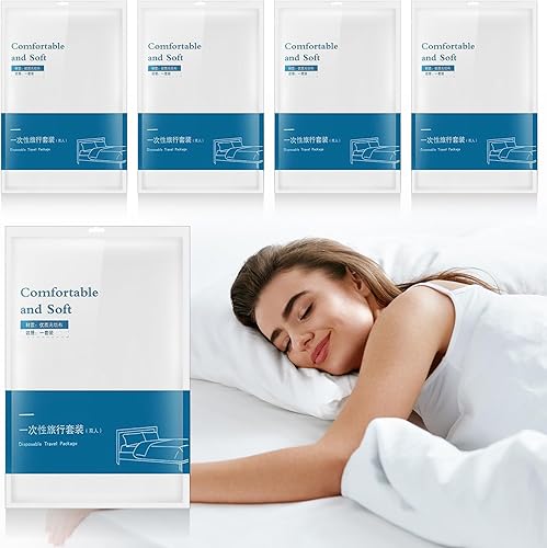 Preboun Lot de 5 draps de lit jetables pour hôtel - Draps de lit jetables pour hôtel - Avec draps de lit, housses de couette et taies d'oreiller - Blanc - Doux et portable - Pour voyage, voyage