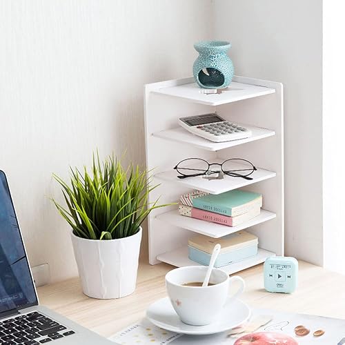MOTT Petite étagère de bureau, organiseur de fichiers, 4 sections pour magazines, CD, étagères, petite bibliothèque pour étudiants, enfants et adultes