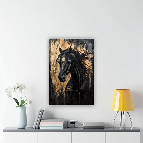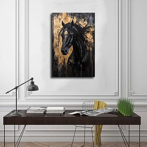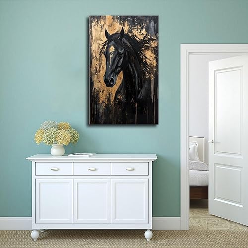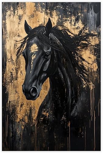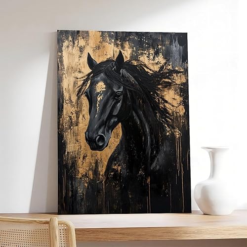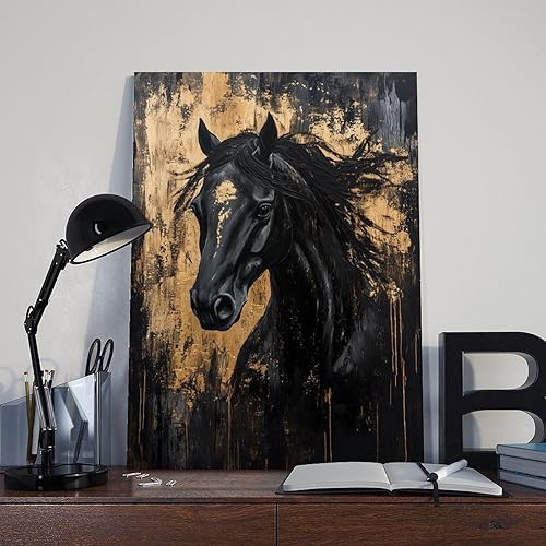 VBQHIR Impression sur toile Cheval noir doré 40 x 60 cm