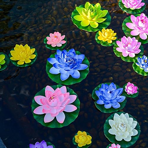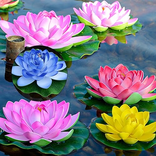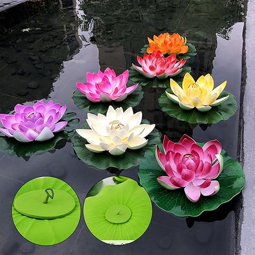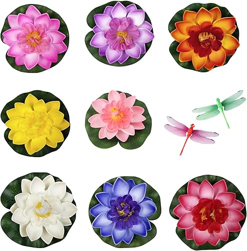 GWAWG Lot de 8 Fleurs flottantes, Fleurs de Lotus flottantes, Nenuphar pour Bassin, Lotus Artificiel avec Libellule pour décoration de Pond