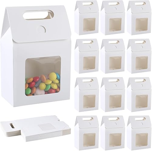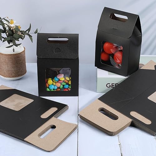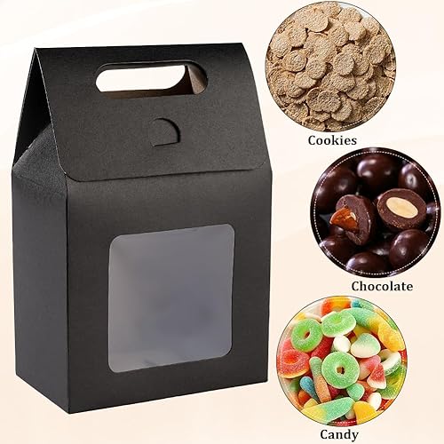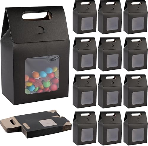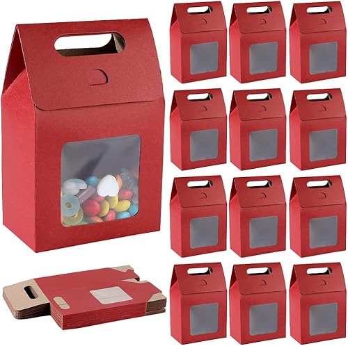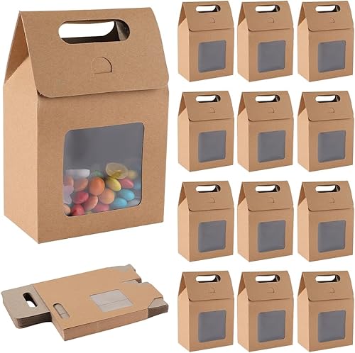 GORGECRAFT 24 Petit Sac Cadeau en Papier Kraft avec Fenêtre Mini Sac Cadeau en Papier avec Poignées Sacs de Rangement de Bonbons pour Biscuits Boulangerie Emballage de Biscuits Fête de Noël Magasin