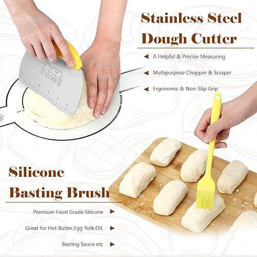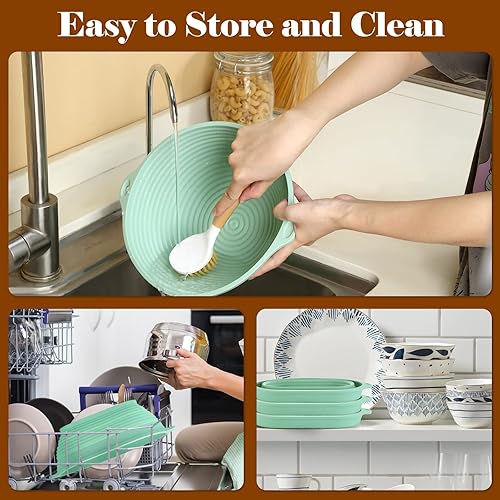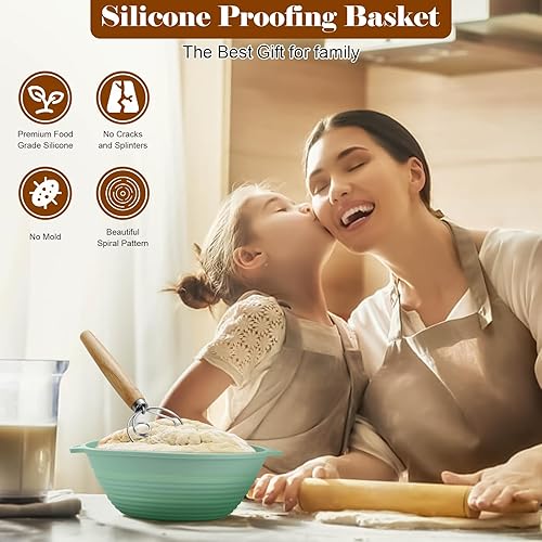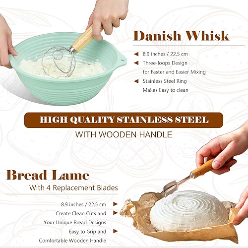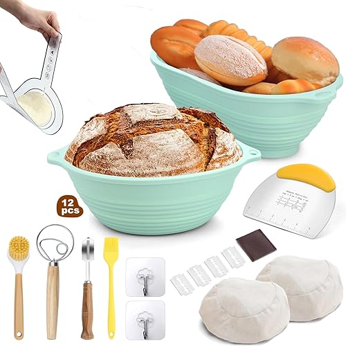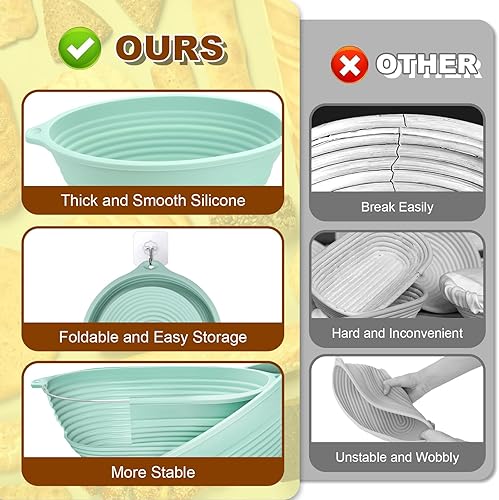 Bestdin Silicone Banneton Pour Pain, Ensemble de Paniers Kit Set de 12, Banneton Pour Pain Ovale 24 cm & Rond 22 cm, Pliables Corbeille à Pain+Lame à Pain+Fouet danois, Raclettes, Tapis de Cuisson