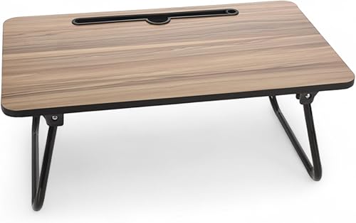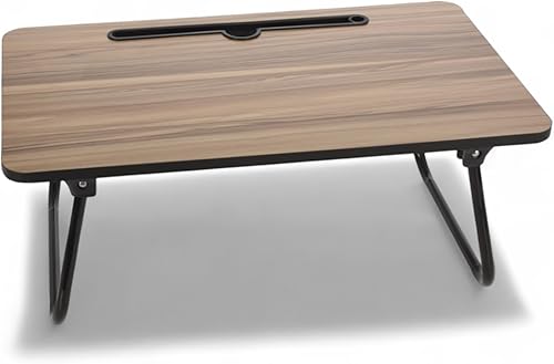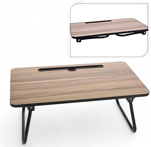 MIJOMA Plateau de lit aspect bois, table de service pliable avec fente pour tablette, 52 x 30 x 21 cm, pieds en métal pliable, polyvalent et pratique