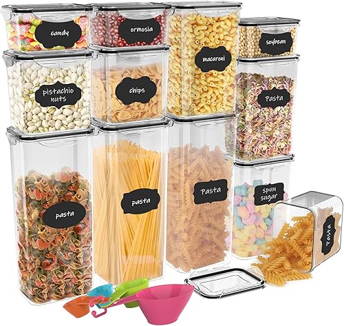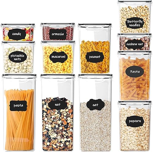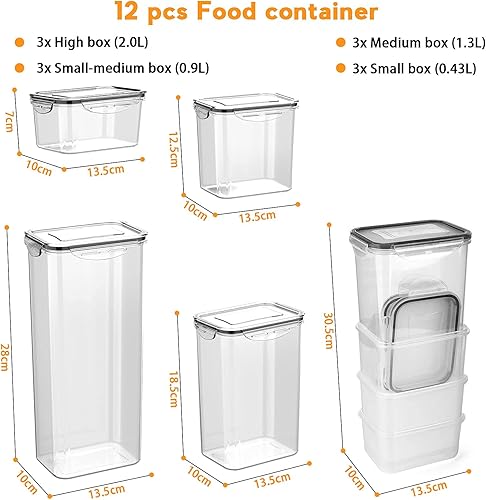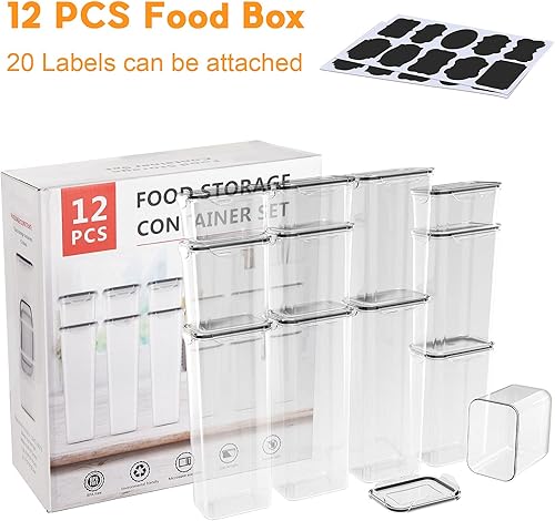 Jim's Store Boite de Rangement Cuisine Lot de 12 Pcs, Contenants Céréales Hermétiques, Bocaux Hermetiques Alimentaires en Plastique Scellée avec Couvercle, pour Stocker les Cereales, Farine, Pâtes