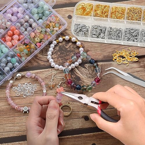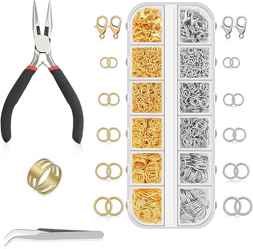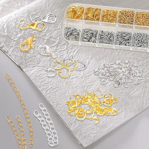 Anneaux de Saut Ouverts, 1143 pcs Bijoux Anneaux Ouverts, Anneaux de Saut Argent et Or Anneaux pour la Fabrication 4/5/6/8/10 mm Anneaux Bijoux avec Boite Homard Fermoirs pour DIY Colliers Bracelets