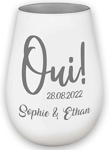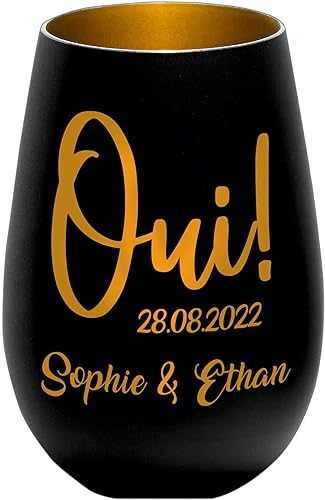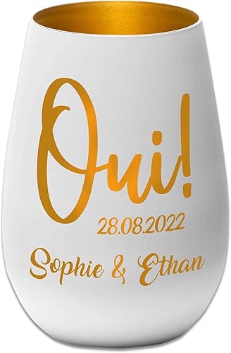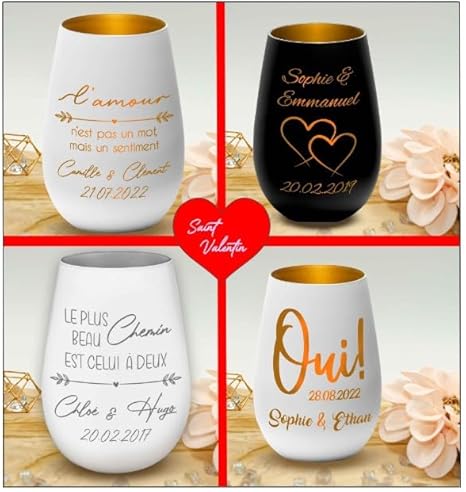 Photophore en Verre personnalisé - Cadeau Mariage - Blanc/Or - Fiançailles - Saint Valentin - Personnalisable avec nom et Date – Amoureux