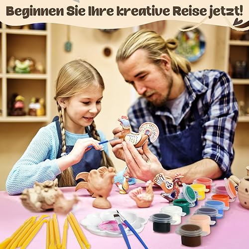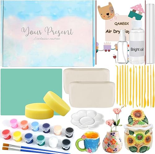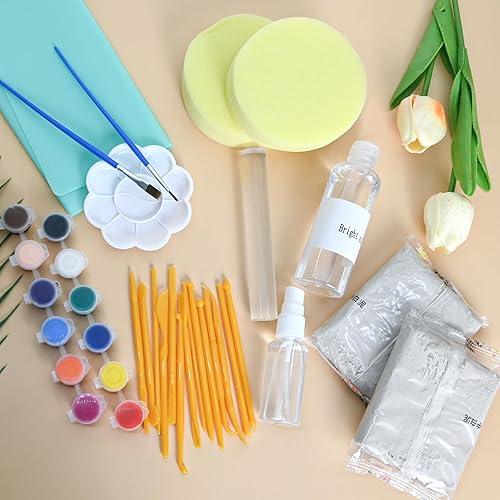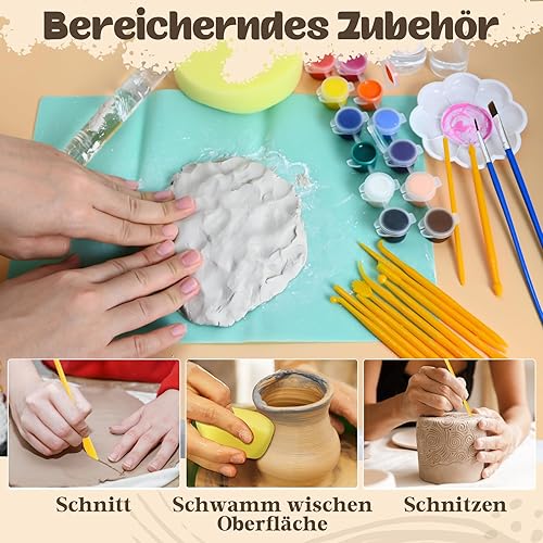 Vezerd Kit de poterie pour débutants, argile, séchage à l'air libre sans brûlure, pour la maison, bricolage, céramique, bricolage, adultes, avec vernis brillant, outils, kit de pottery cadeau pour