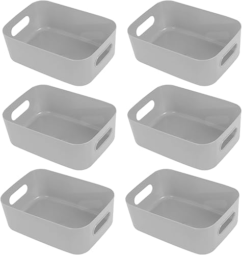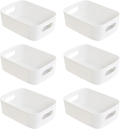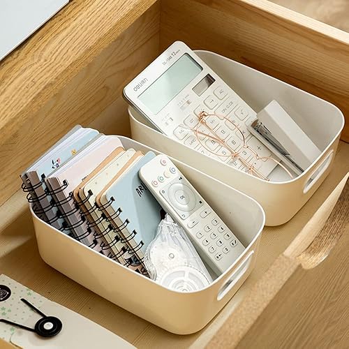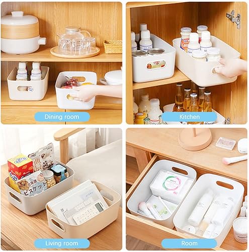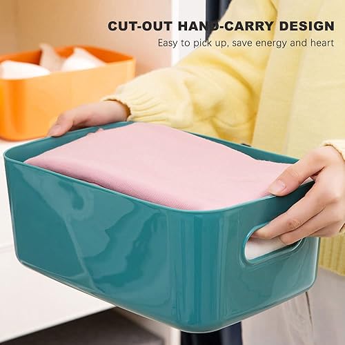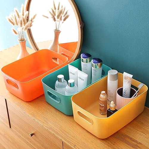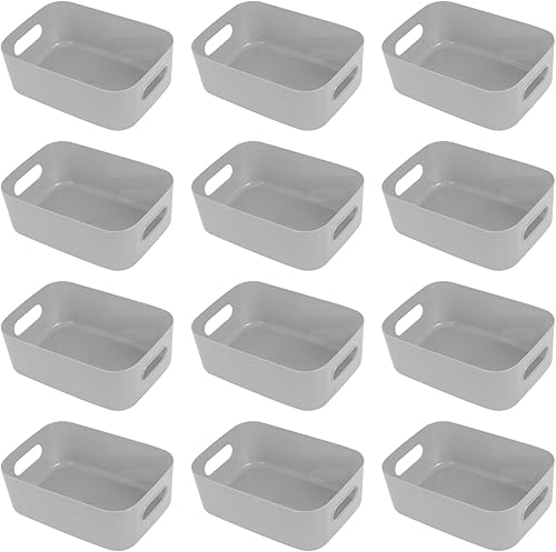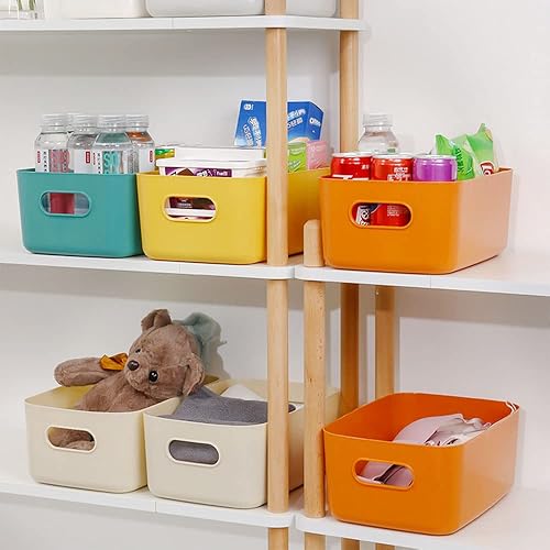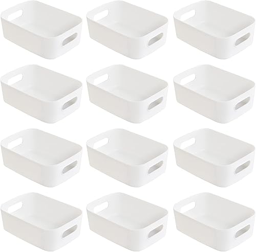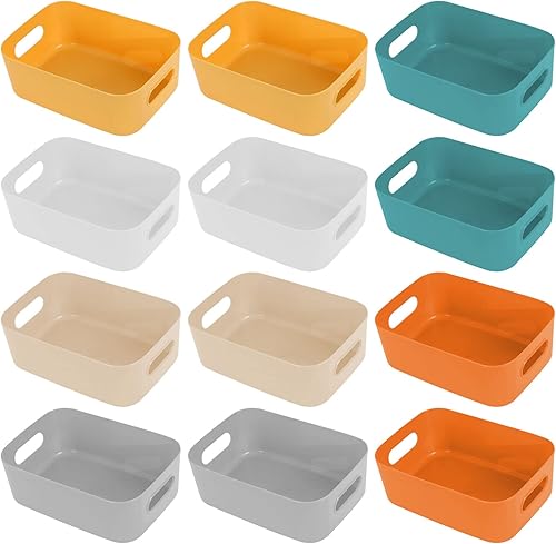 Hwtcjx 12 pièces Panier de Rangement en Plastique, Panier Plastique Rangement, Panier en Plastique avec Anse, Empilables pour Placards Maison Cuisine Bureau jardin, 21 x 14 x 7cm (Multicolore)