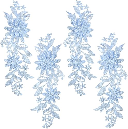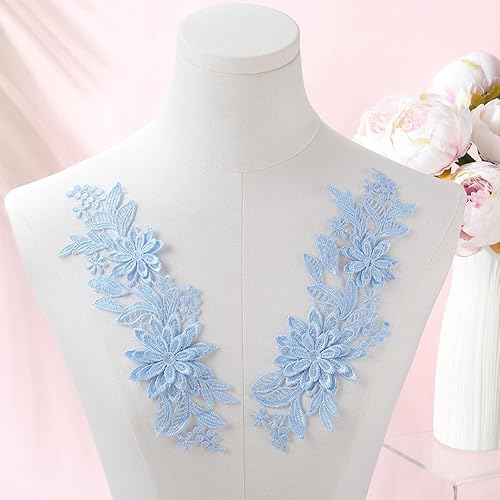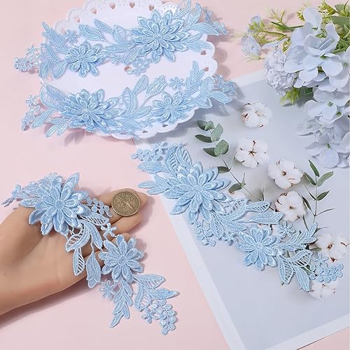CABODYALS 2 Paire Bleues 3D Florales Appliques en Dentelle Bleu Vintage Feuille en Polyester Fleurie Patchs Brodé à Coudre pour Couture la Fabrication de Robes de Coiffes Jeans Mariage de Décoration