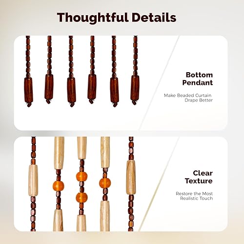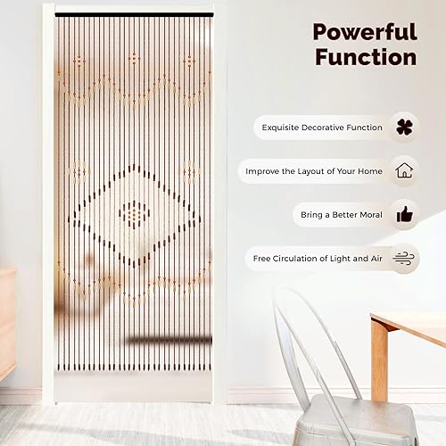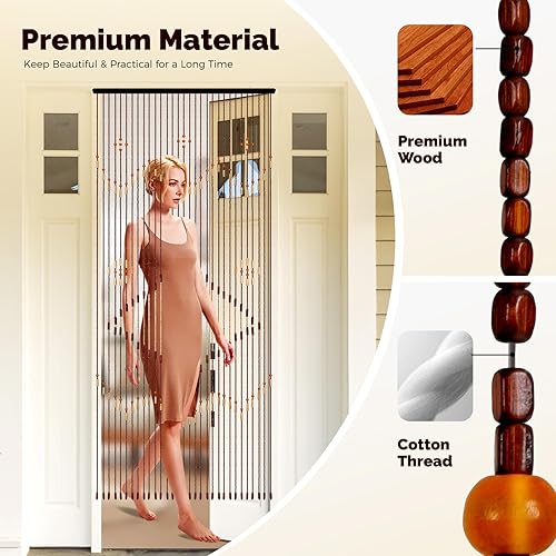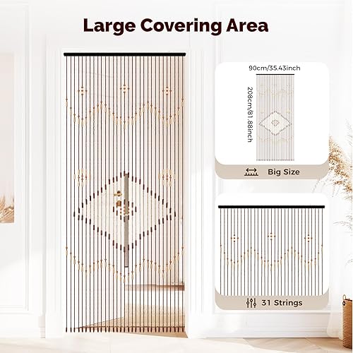 Rideau de porte en bambou - 208 x 90 cm - Rideau de porte en bois naturel - 31 lignes - Vintage - Chaîne de perles en bois - Installation facile pour vérandas, couloirs, différentes entrées de pièce