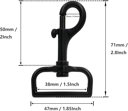 BIKICOCO Mousqueton pivotant - Oeil pivotant de 3.8 cm - Fermoir à Pince de Homard à Ressort, Clip à Ressort de déclenchement, Noir - 10 pièces