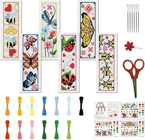 FREEBLOSS 6PCS Kit de Broderie au Point de Croix - Thèmes Insectes - Compté pour Débutants