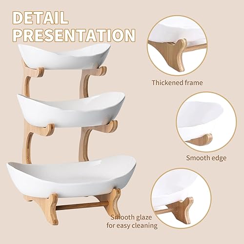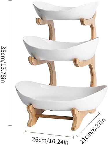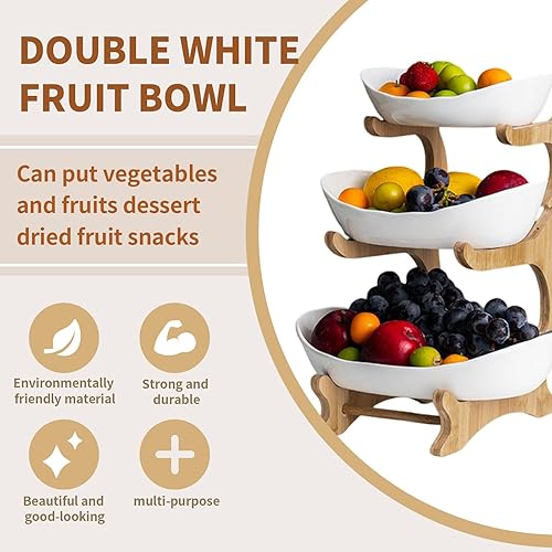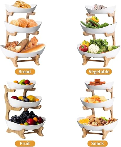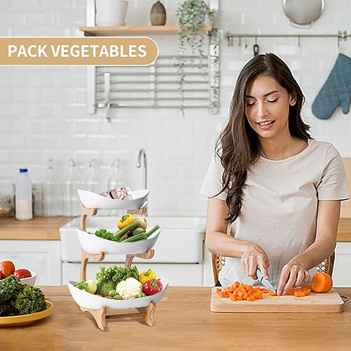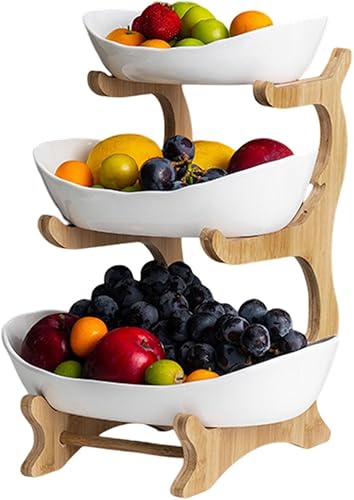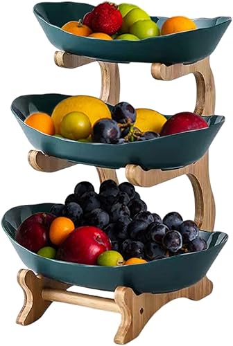 Inscrip Étagère à fruits, peu encombrante, pour la famille, stable et sans tremblement, en plastique, avec support en bambou, pour légumes, fruits, collations, bonbons (vert, 3 couches)