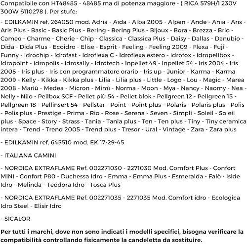 Easyricambi Bougies d'allumage pour poêle à pellets 300 W 155 mm ; diamètre 10,2 mm ; pour la Nordica Extraflame
