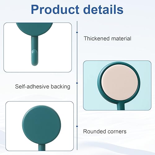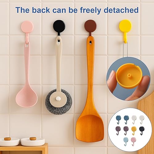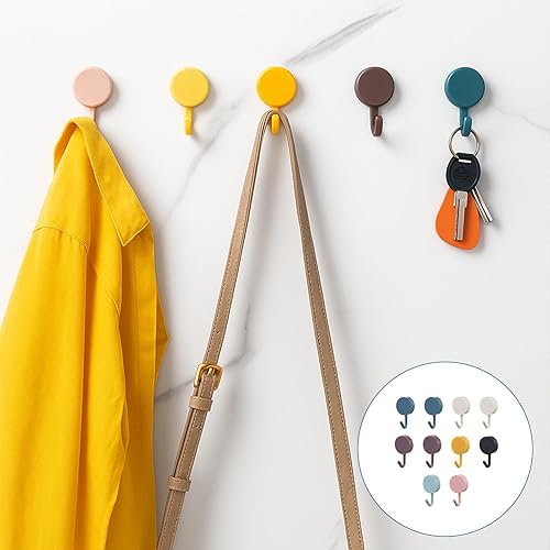 Huybaa Crochet Adhésif Mural, 10 Pièces Petites Colorés Crochets Muraux Sans Percer ni clous, Pour Accroche Salle de Bain, Cuisine, Plafond, Accrocher, Mural, Porte, Peignoirs, Porte Serviette