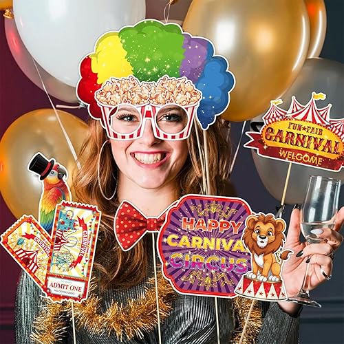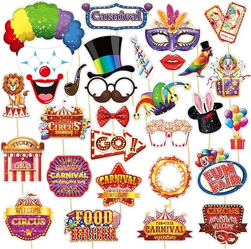 30 pièces Accessoires pour Photomaton Cirque,Décorations pour Le Carnaval, pour Les fêtes d'anniversaire, pour Le thème du Carnaval