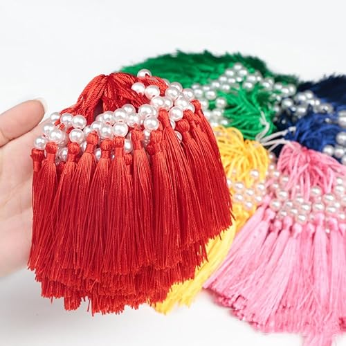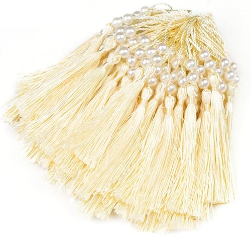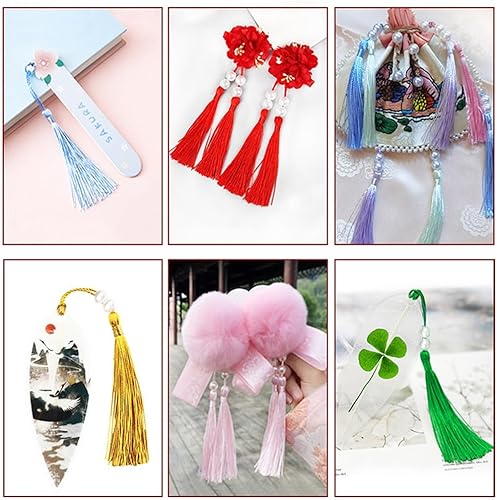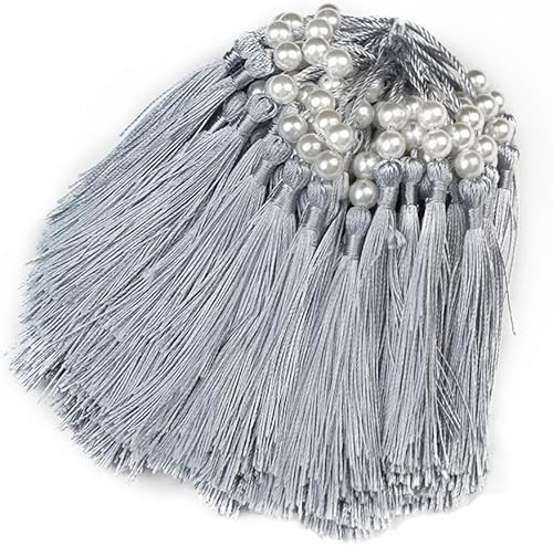 Wisafory Lot de 100 pendentifs en perles - Marque-page - Pour bricolage - Mini pompons avec boucle - Multicolore - Fait à la main - Pour le bricolage, la décoration de la framboise - Gris