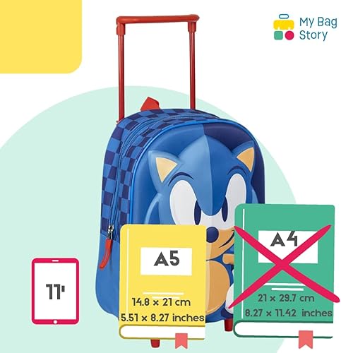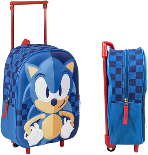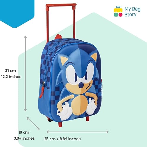 mybagstory - Sac à roulettes Sonic 3D – Enfant 31x25x10 cm – 1 Compartiment zippé – Trolley 2 Roues – Effet Relief – Idéal école Maternelle, Vacances ou Sorties