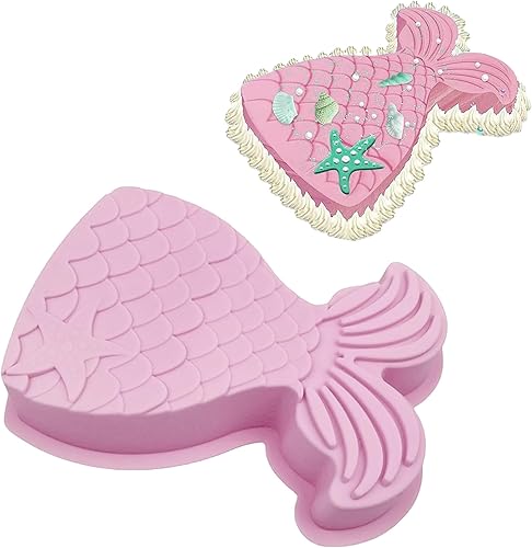 YXHZVON Moule Gateau Silicone, 1 Pcs Moule a Gateau en Forme de Sirène Queue, Anti-adhésifs Moule Gateau pour Chocolat, Gelée, Bonbons, Cuisson, Rose