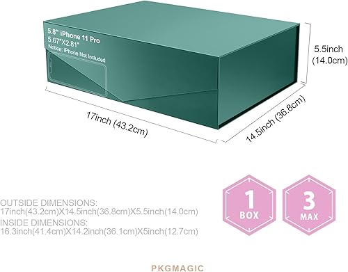 PKGMAGIC Boîte Cadeau Extra Large 43,2 x 36,8 x 14 CM, Grand Boîte Cadeau avec Couvercle,Vert Boîte Cadeau Vide pour Paques, Vacances, Mariage, Anniversaire