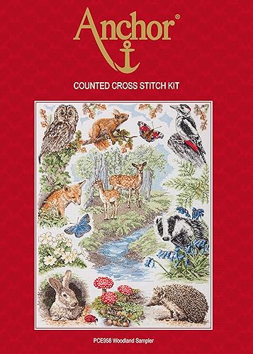 ANCHOR Kit Point de Croix : Essentials : Woodland Sampler, Multi, 40 x 30 cm, Multicolore, 40 x 30cm