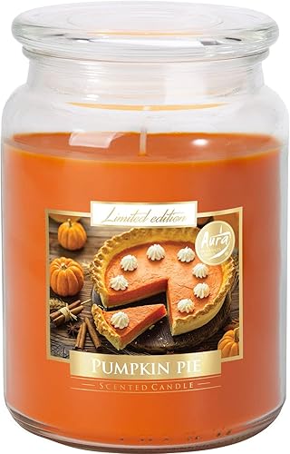 Bispol Bougie parfumée Gâteau à la citrouille dans un bocal, grand avec couvercle, 100h fumant, 14cm hauteur, 9,9cm de diamètre