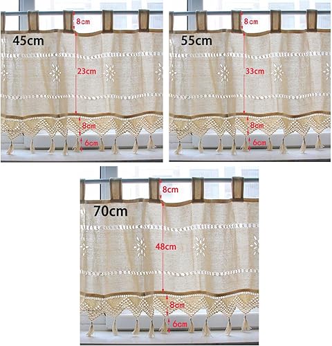 Rideau De Cuisine En Macramé Rideau De Cuisine Court Vintage Brise-bise Rideaux Sous L'évier Installation De Tringle, Une Pièce Pour Chambre À Coucher Cuisine Salon Maison De Campagne ( Color : Flat w