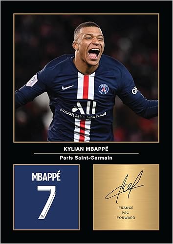 Icons Wall Art Photo imprimée A4 signée Kylian Mbappe, cadeau pour les fans du PSG, sans cadre