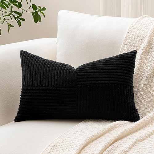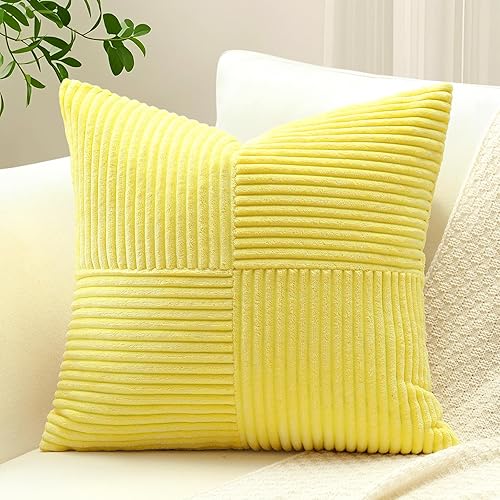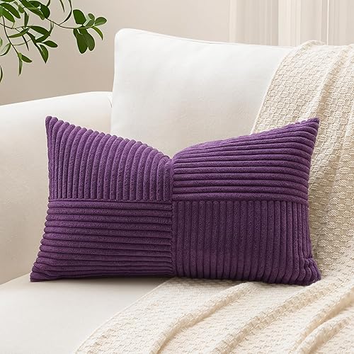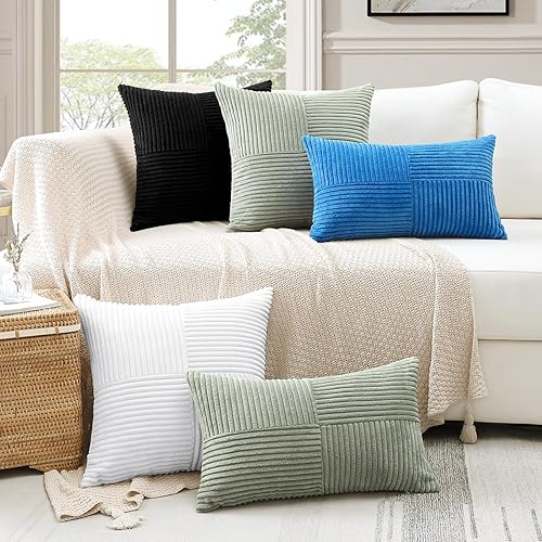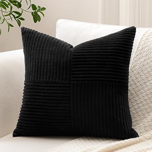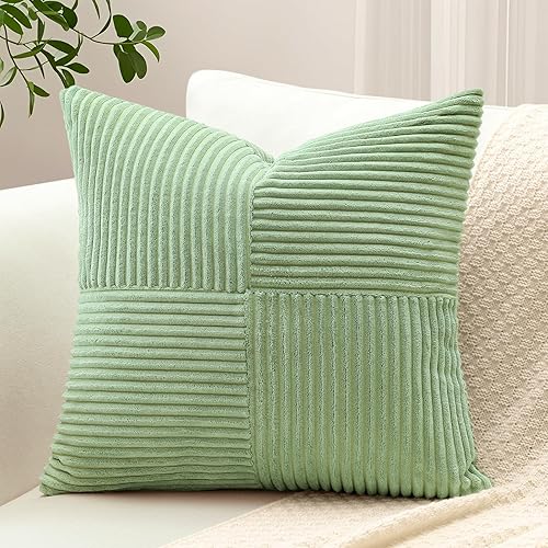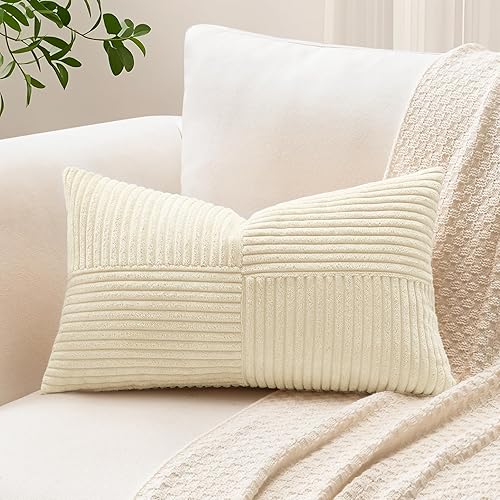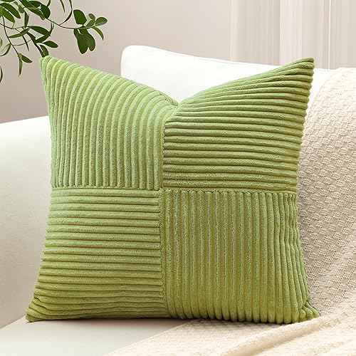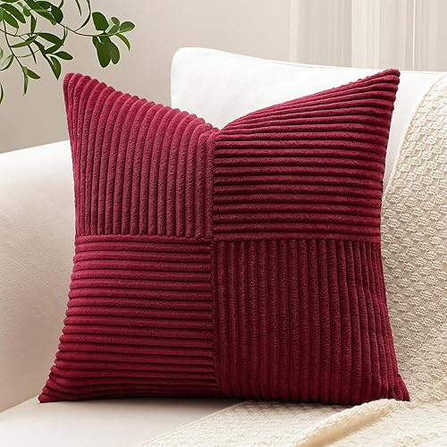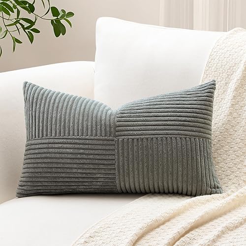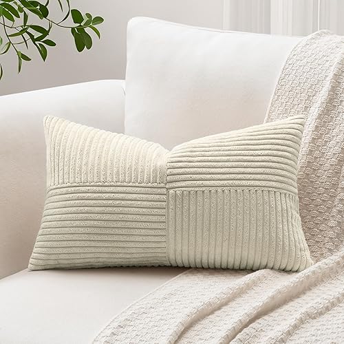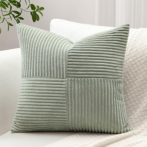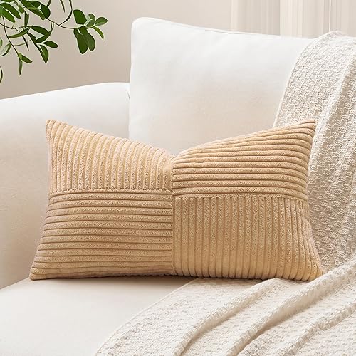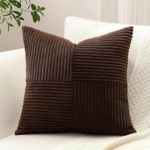 Sungeek Lot de 1 housse de coussin décoratif carré en velours côtelé uni et doux, à rayures avec motif de croix et patchwork pour canapé, lit, terrasse, 40 x 40 cm, taupe neutre