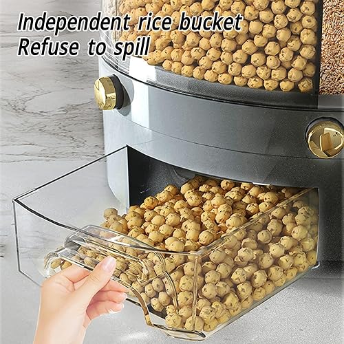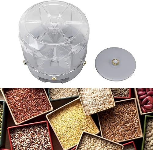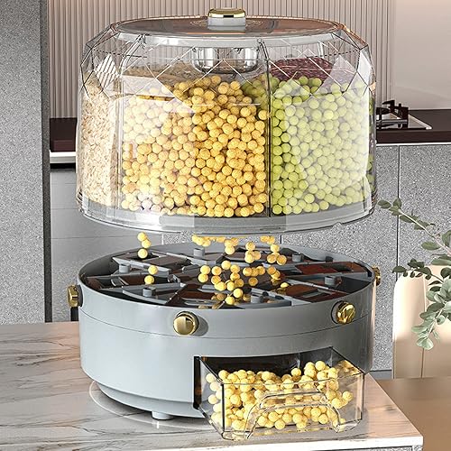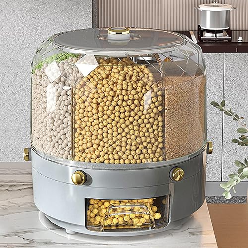 Récipient de Stockage de Riz et de Céréales, Capacité de 6 Kg, Distributeur de Riz à 6 Grilles, Récipient de Stockage de Nourriture Rotatif à 360°, Boîte de Stockage de Nourriture(Blanc)