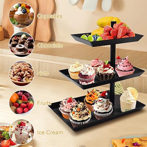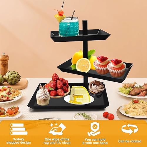 Kqpoinw Présentoir à Fruits à Trois Ètages, Ètagère Décorative Pivotant à 360° pour Le Petit-Déjeuner, la Fête Étagère Décorative Triple pour Sucreries, Biscuits, Fruits
