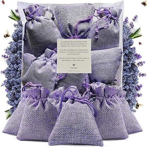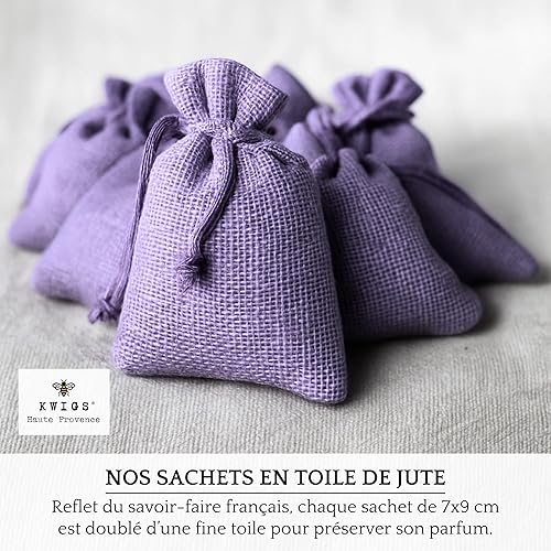 Sachet de Lavande en Jute Doublée – 12 Sachets Couleur Lavande sans OGM Remplis à la Main – Petit Sac pour Placards, Linge, Armoire – Fleurs de Haute Provence – Nouvelle Récolte