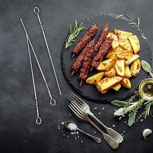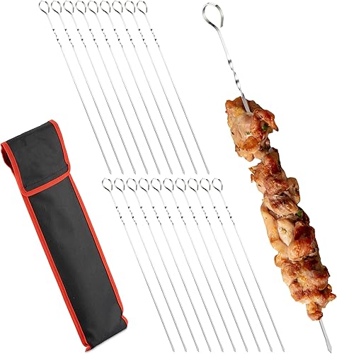 Relaxdays Brochette en Acier Inoxydable, Lot de 20, Pointe, Housse, pour Viande, légumes, 39 cm, métal, argenté