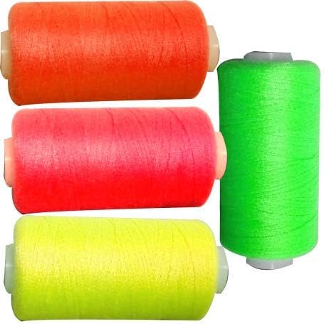 4 Bobines 500 mètres Polyester Coloris Fluo Jaune Vert Rose Orange Fil à Coudre