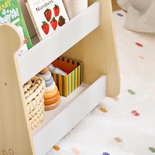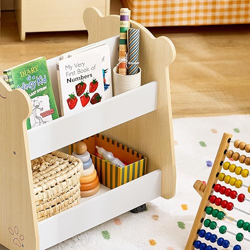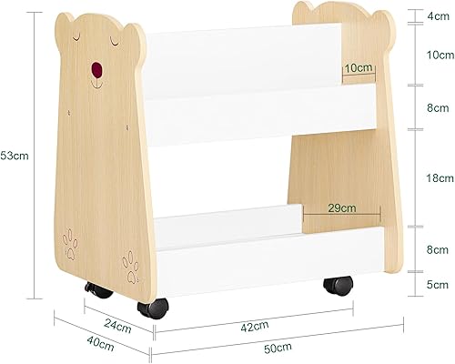 SoBuy Étagère à Livres pour Enfant, Étagère à Jouets, Bibliothèque à roulettes pour Chambre d'enfant et Salle de Jeux, Meuble Rangement Enfant Design pour Jouets et Livres, 50x40x53 cm KMB103-WN
