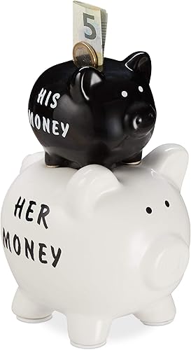 Relaxdays Tirelire Cochon, His & Her Money 2 cochons, Cadeau Amusant pour Couples & Mariages, économie, Noir/Blanc
